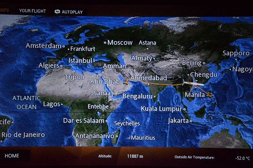 Um 22.40h geht es dann weiter in die Nacht, 7000 km nach Manila, der Hauptstadt der Philippinen, der aufgegenden Sonne entgegen (7h Zeitverschiebung) .